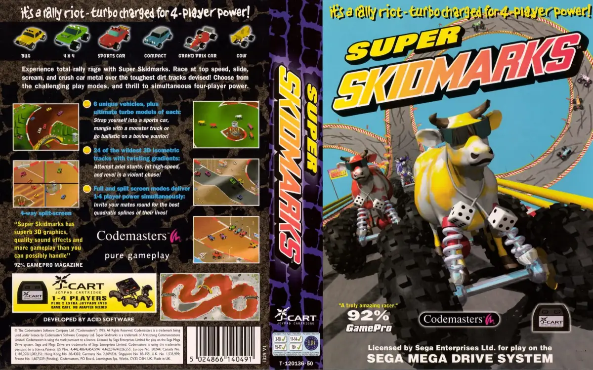 Skidmarks es una saga de Acción, Conducción y Party, desarrollada por Acid Software. Sus juegos están disponibles en Mega Drive y PC.