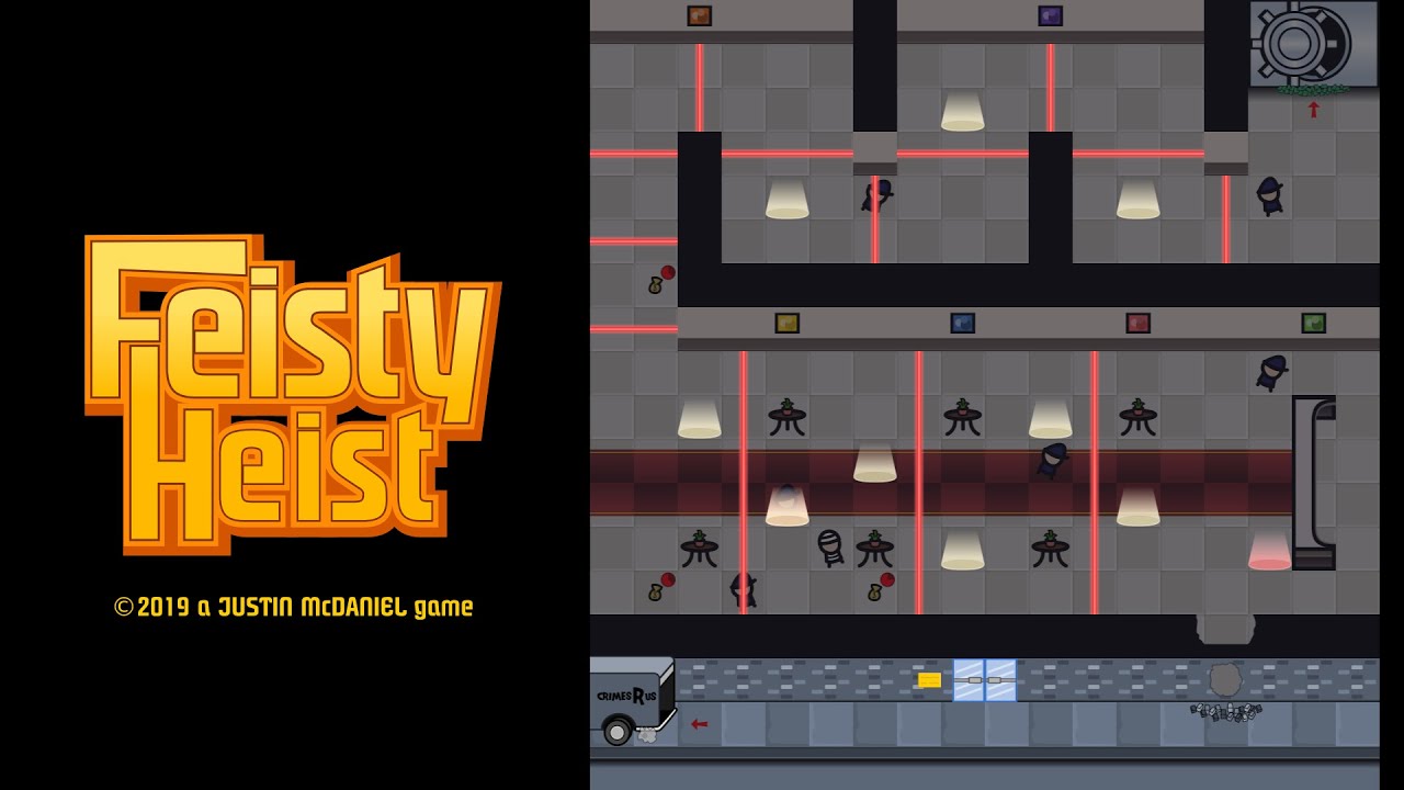 Feisty Heist es un videojuego de Arcade clásico, Rompecabezas y Sigilo, desarrollado por estudios destacados y distribuido por varias editoras. Está disponible en PC.